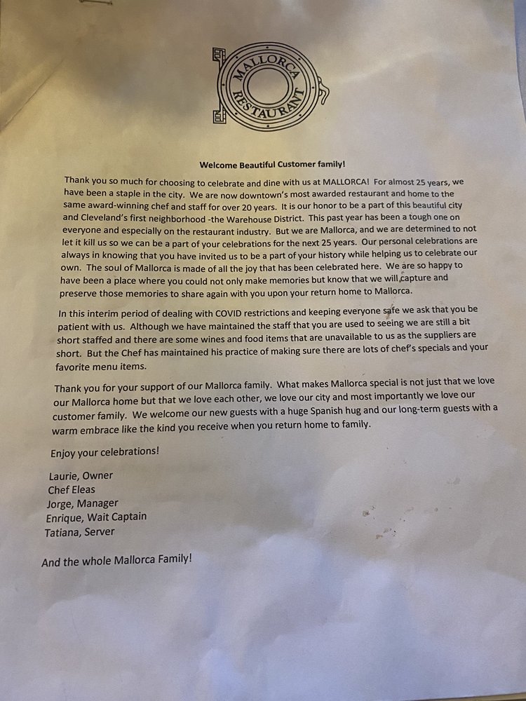 Welcome to Mallorca, a charming Spanish seafood haven located at 1390 W 9th St in Cleveland, OH. This gem, proudly Latinx and women-owned, brilliantly combines traditional Spanish cuisine with a modern flair. Their menu features a delightful array of seafood specialties, such as Paella Valenciana, a rich saffron-infused casserole brimming with chicken and an array of shellfish. Vegetarians can savor the vegetarian paella or fresh salads, all meticulously crafted with seasonal ingredients.